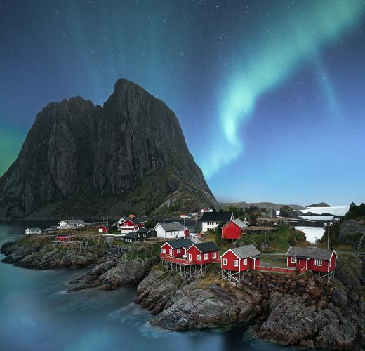 Weiter geht es in die Mitte des Landes, wo du kleine, traditionelle Fischerdörfer entdecken kannst. In der dunklen Jahreszeit hast du hier die Chance, die Nordlichter über verschneite Landschaften tanzen zu sehen – ein magisches Erlebnis.