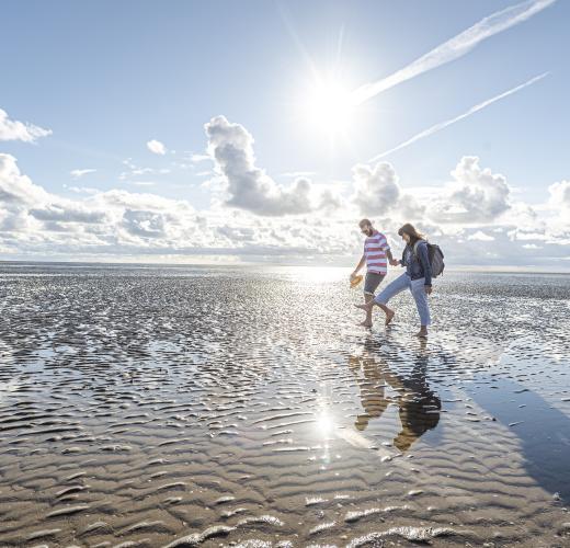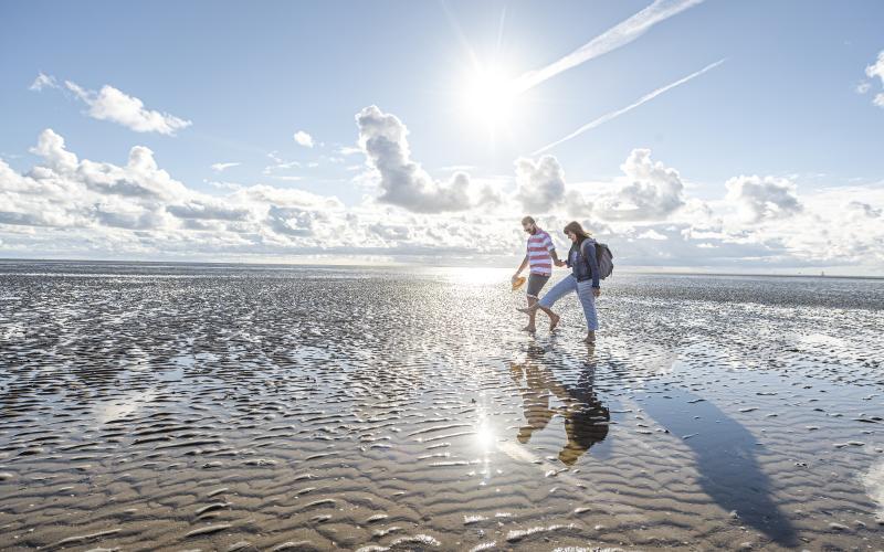 Im Wattenmeer findest du Ruhe und Weite. Barfuß durch den Schlick gehen oder Vögel beobachten – die Natur bestimmt den Takt.