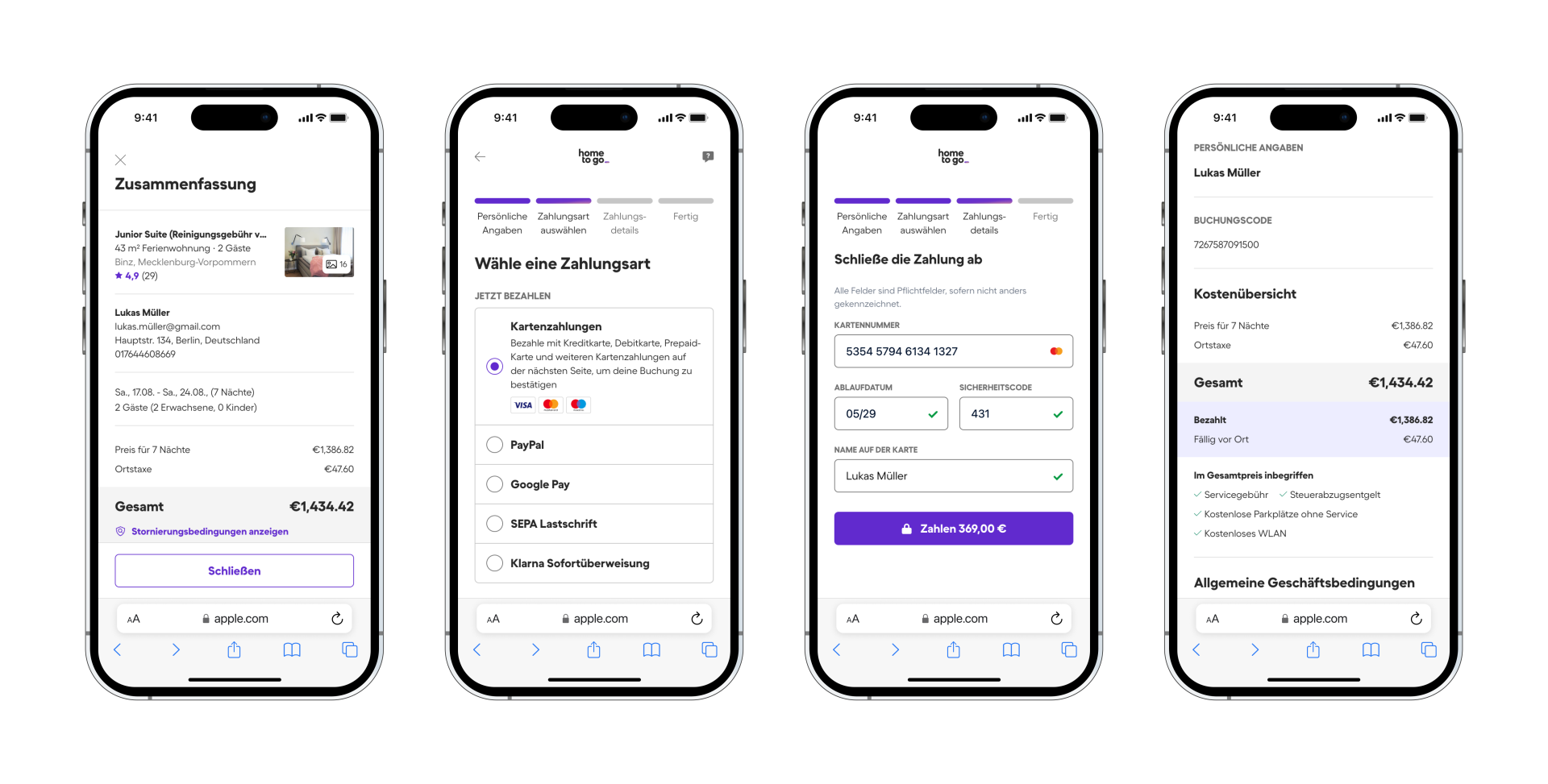 Erhöhe deine Checkout-Rate mit mobilen Zahlungsoptionen. 47% der Buchungen3 bei HomeToGo erfolgen über Mobilgeräte und Tablets.