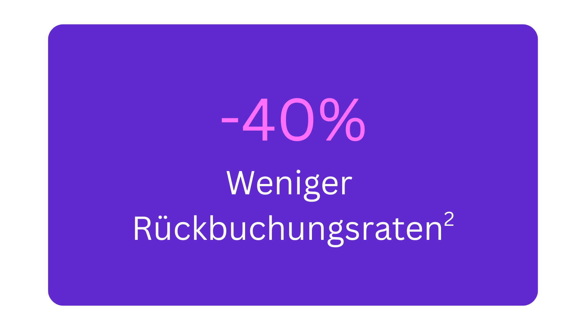 Unsere integrierte Lösung deckt finanzielle Vorschriften (PSD3, PSR) ab, reduziert Betrugsfälle um 90%4 und bietet vollständige Rückbuchungsverwaltung für dich.